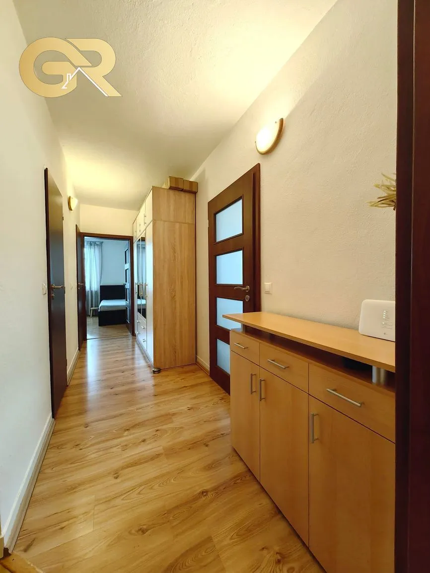 Dispozícia bytu je veľmi praktická a priestranná: vstupná chodba s dvomi komorami, kuchyňa, obývacia izba so vstupom na veľký balkón, spálňa a dve samostatné izby, kúpeľňa, samostatné WC.