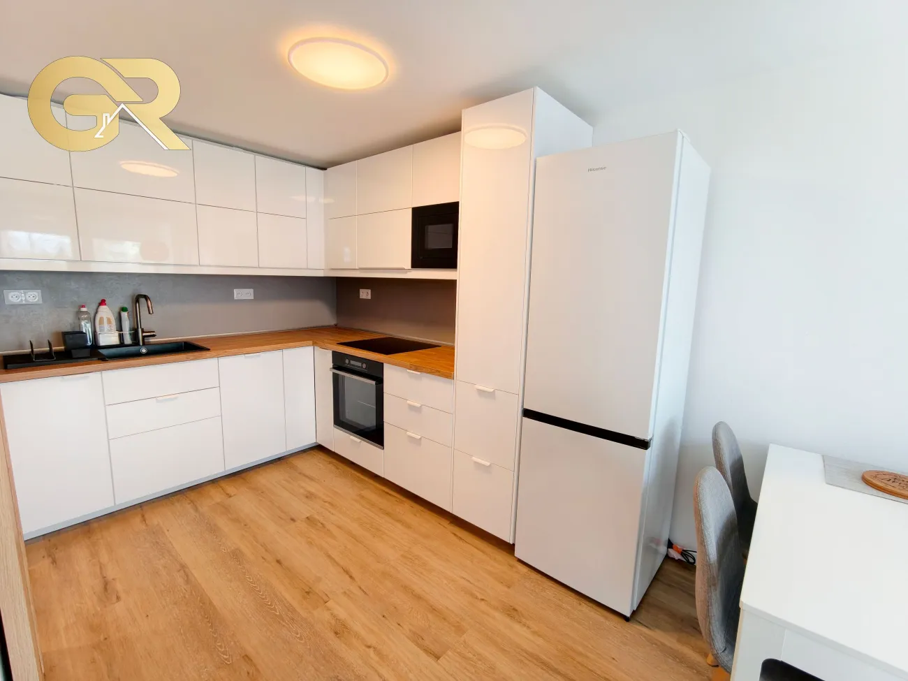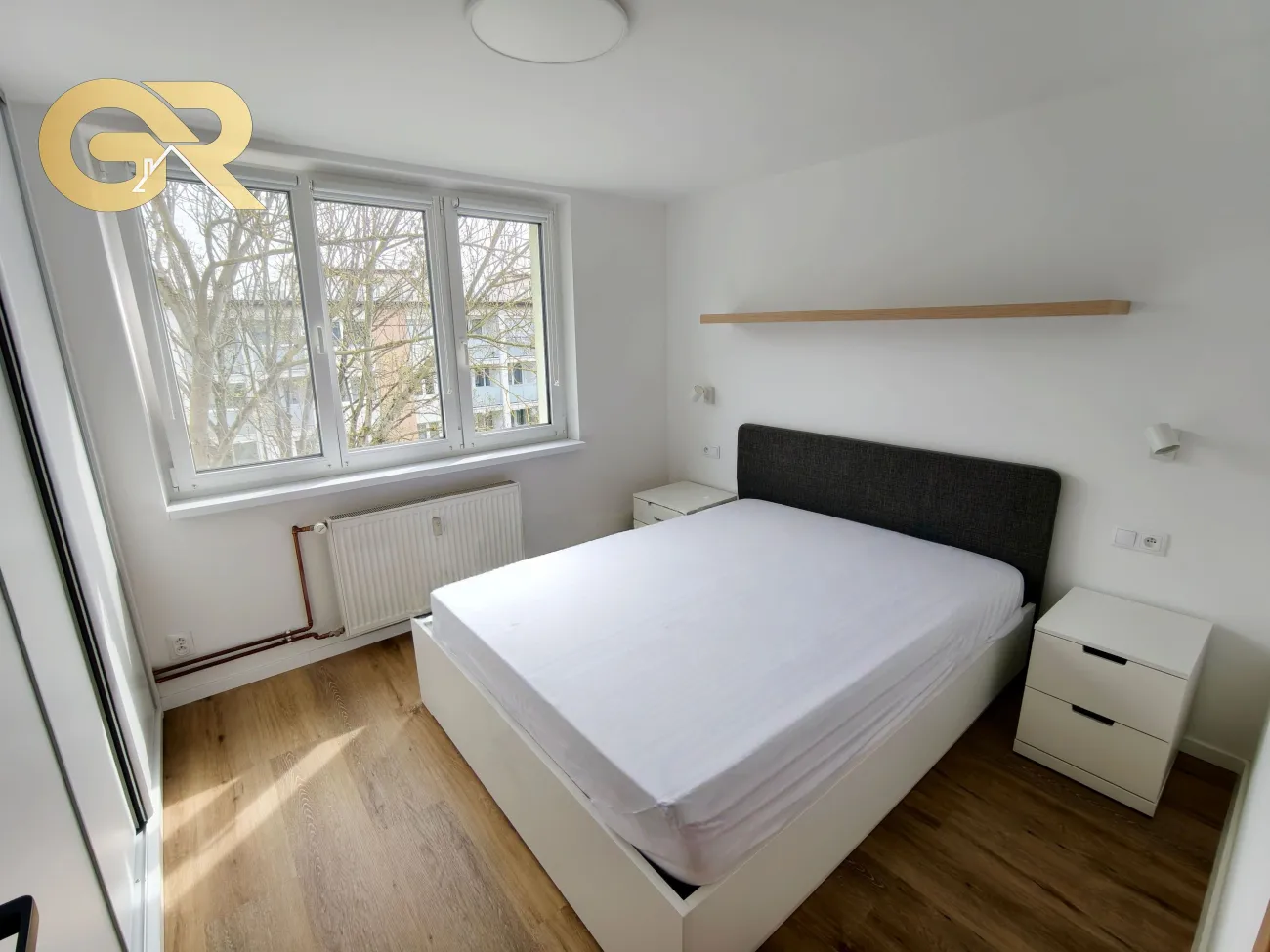 Interiér bytu prešiel kvalitnou rekonštrukciou a je zariadený moderným nábytkom, ktorý poskytuje komfortné bývanie. Samozrejmosťou sú nové elektrospotrebiče vrátane práčky so sušičkou. Vstavané skrine v izbách zabezpečujú dostatok úložného priestoru. K dispozícii je optický internet s Wi-Fi pripojením.